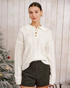 Pull beige à épaules tombantes et boutons