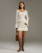 T-shirt beige à manches cloche à volants