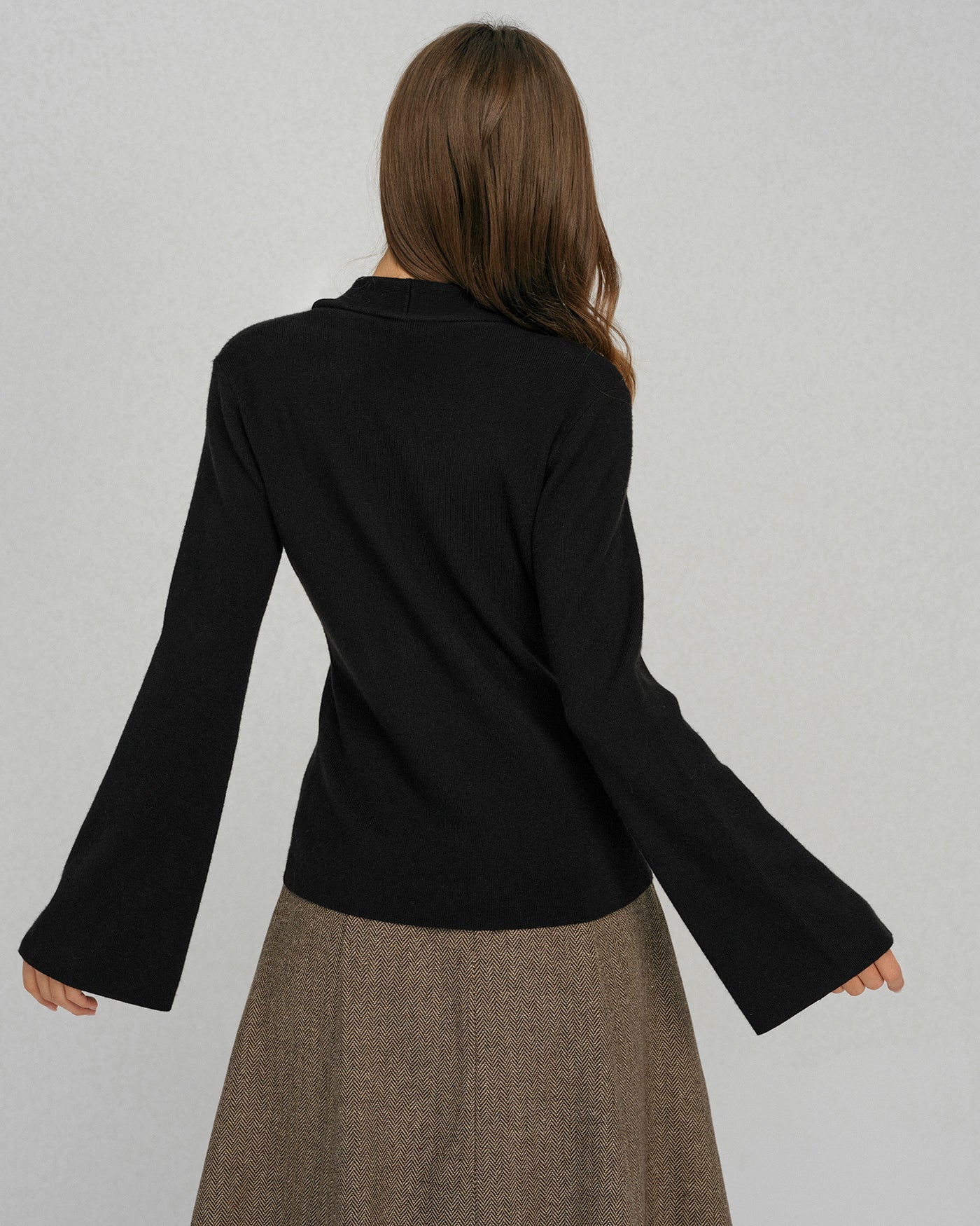 Pull noir à manches cloche et col boutonné