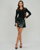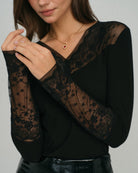 T-shirt en maille à col en V avec empiècements en dentelle noire