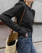 Pull noir à col rond et découpes