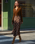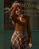 Pull marron à manches cloche et boutons