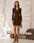 Robe pull moulante marron à boutons
