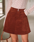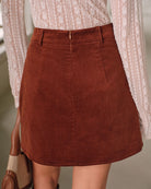 Jupe trapèze courte en velours côtelé marron