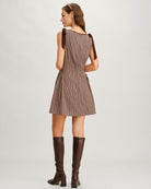 Robe courte à carreaux marron avec bretelles