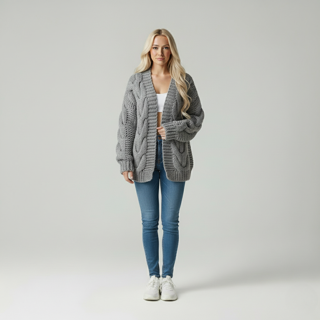 • Détails : Maille torsadée, coupe ouverte, manches longues