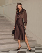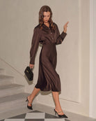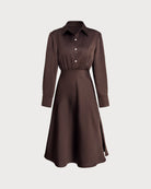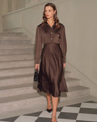 Robe midi boutonnée froncée couleur café