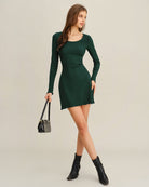 Robe verte trapèze à manches longues