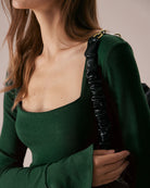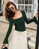 T-shirt vert à manches cloche en maille côtelée