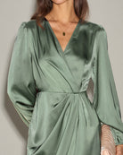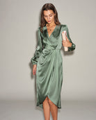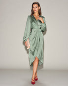 Robe midi froncée en satin vert