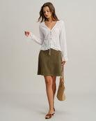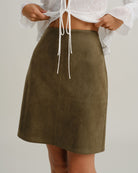 Jupe courte droite en daim vert