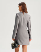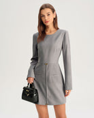 Robe courte grise trapèze à manches longues