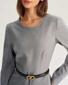 Son col rond montant et ses manches longues créent une silhouette épurée, presque d'inspiration moderne. C'est la robe idéale pour un entretien d'embauche important ou une présentation en salle de réunion. Une pièce chic, de style tunique, qui inspire confiance.