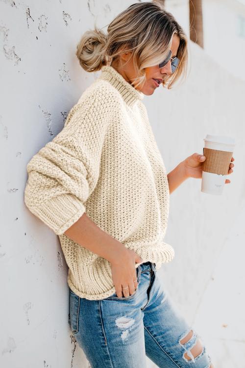 Doux, chaud et incroyablement confortable. Ce pull col roulé oversize à manches chauve-souris est un véritable indispensable pour les journées froides. Parfait pour un look décontracté et élégant, où que vous soyez.