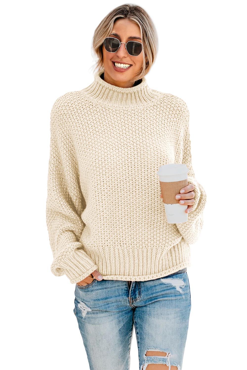 • Détails : Col roulé, manches chauve-souris, grosse maille