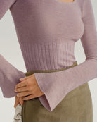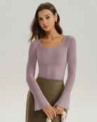 Adoptez un look rétro-chic irrésistible avec notre top en maille à encolure carrée et manches cloche top. Confectionné dans un lilas sophistiqué et discret, ce top est un basique élégant. Son atout principal ? Une encolure carrée tendance et flatteuse qui apporte une touche de modernité à la silhouette.