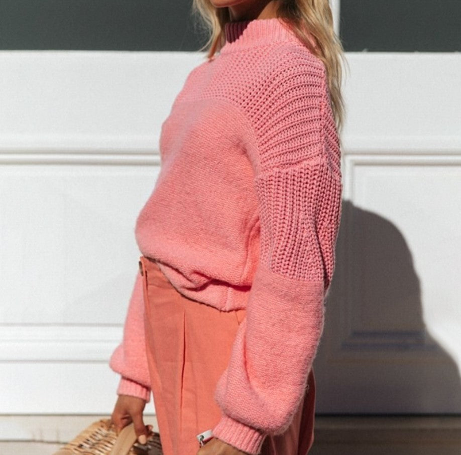 • Détails : Texture en laine épaisse, col rond, coutures asymétriques, finitions en maille plate