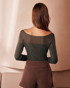 Ce Sheer Top est composé de viscose et de nylon. La viscose (aussi appelée rayonne) est une fibre cellulosique synthétique fabriquée à partir de pâte de bois. Elle est douce, respirante, résistante et évacue l'humidité. Le nylon est une fibre synthétique souple et imperméable, qui résiste aux frottements et aux éraflures sans s'abîmer.