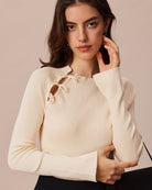 Ce T-shirt à manches longues est un indispensable de toute garde-robe. Son col rond délicat, son nœud papillon et sa maille côtelée lui confèrent une touche de sophistication, tout en créant un look élégant et féminin. Ses manches longues, sa coupe ajustée et ses découpes lui donnent un style décontracté et tendance, idéal au quotidien comme pour les occasions plus habillées. Vous allez adorer la coupe confortable et élégante de ce t-shirt incontournable.