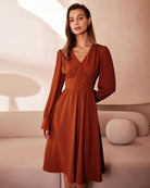 Cette Robe midi col V est idéale pour toutes les occasions. La taille haute, la fermeture boutonnée et la coupe trapèze de cette robe lui confèrent fluidité et mouvement, la rendant facile à porter et idéale pour danser. Les fronces et les plis ajoutent une touche féminine et la rendent parfaite pour toutes les occasions. Que ce soit pour un rendez-vous galant ou une soirée habillée, cette robe fera assurément sensation et vous fera vous sentir fabuleuse.