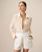Chemise à manches longues jacquard abricot pour femme
