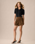 Chemisier en coton noir à col Chelsea et bordure en dentelle pour femme