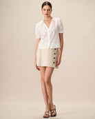 Chemisier en coton blanc à col en dentelle brodée pour femme