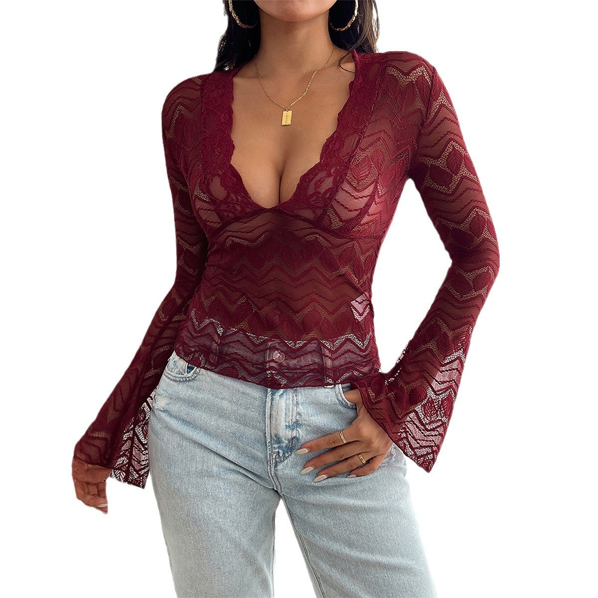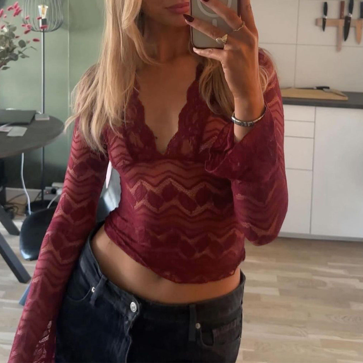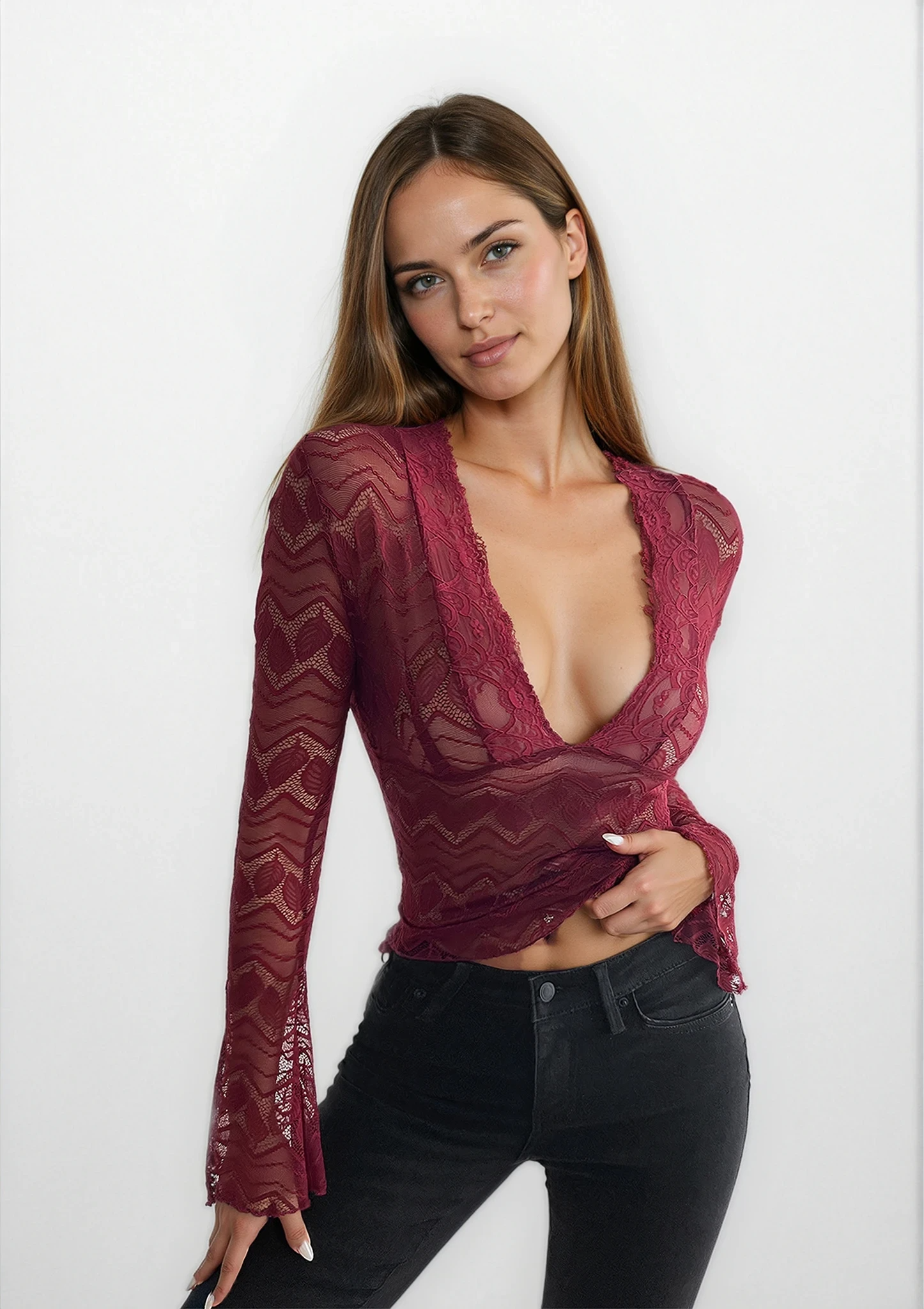 Ce crop top en maille bordeaux allie un motif floral saisissant à une coupe flatteuse, idéal pour apporter une touche d'originalité à votre look.